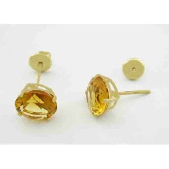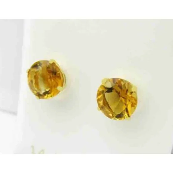 Number of Gemstones: 2Type: EarringsMain Stone Color: YellowMain Stone Shape: RoundShape: RoundStyle: StudBase Metal: GoldSetting Style: ProngEar Area: LobeCut Grade: Very GoodMetal Purity: 14kClosure: Screw BacksMain Stone: Yellow topazMain Stone Creation: NaturalMetal: Yellow Gold