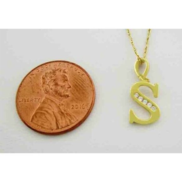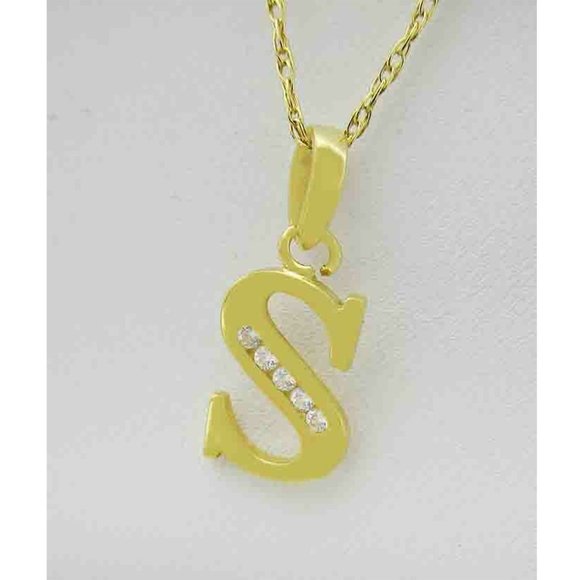 Initial "S" White Sapphires Pendant Necklace 14k Gold