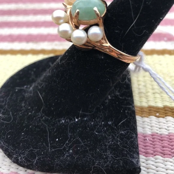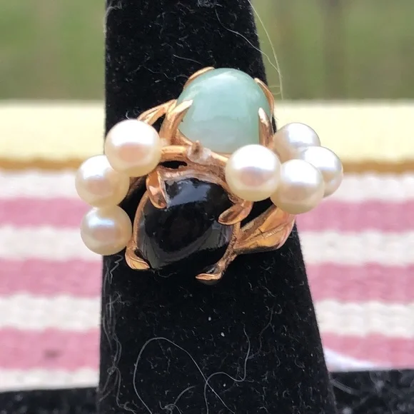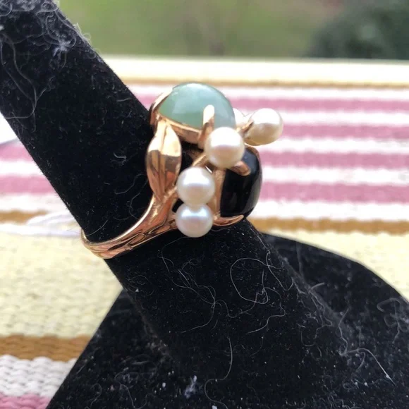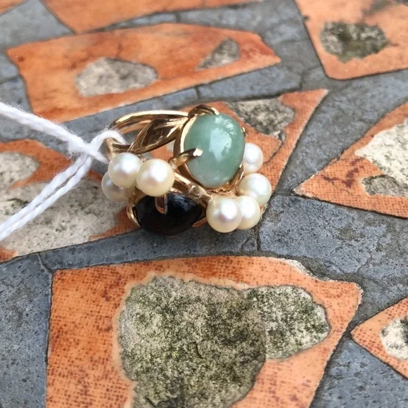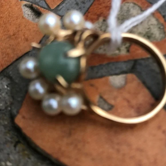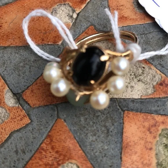 14kt yellow gold ring with pearls and gemstone..missing pearl