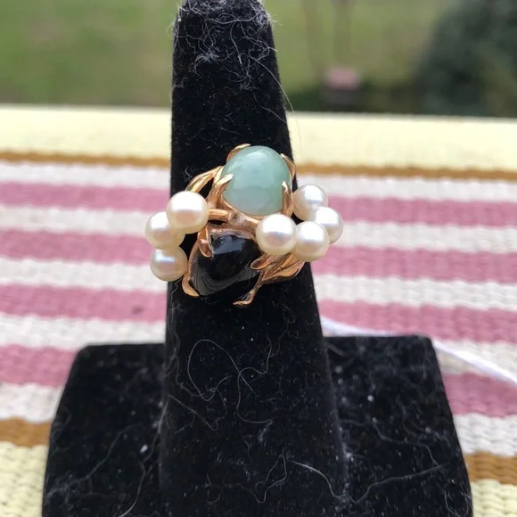 Vintage 14kt yellow gold pearl and bezel set gemstone ringSize 6Estate Find Questions welcomed Beautiful ringPrice is firm