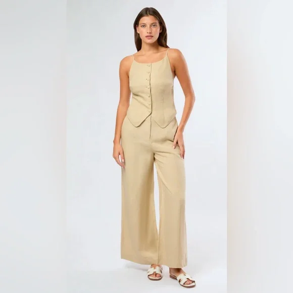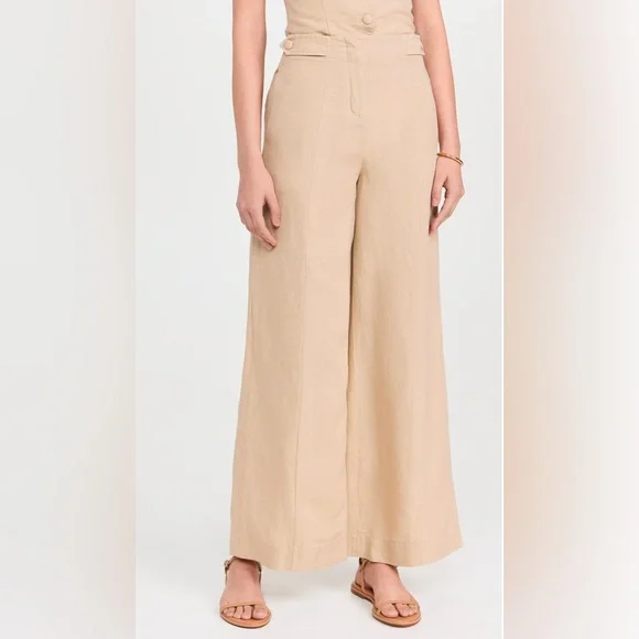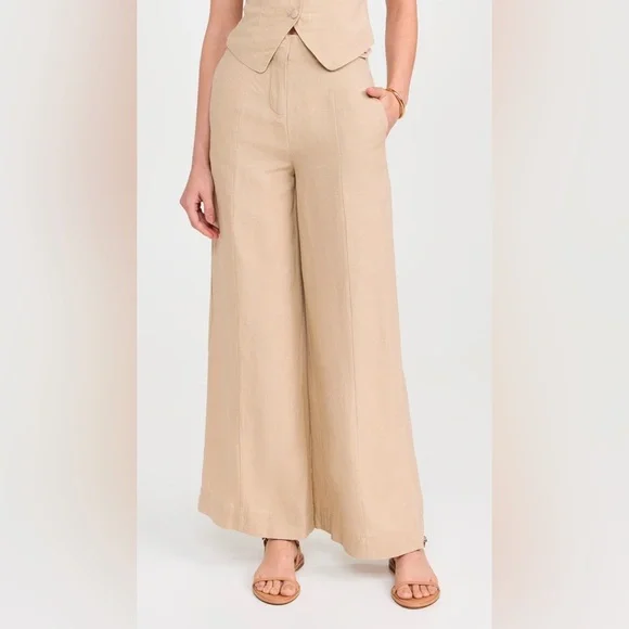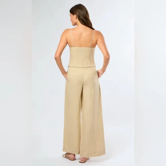 NWT Onia Air Linen Palazzo Pants in Jute Size 4 High Rise Wide Leg Neutral