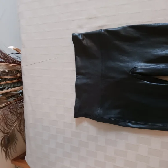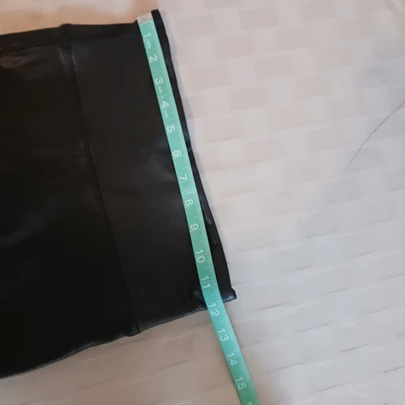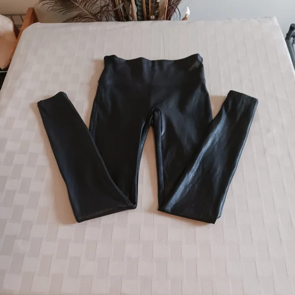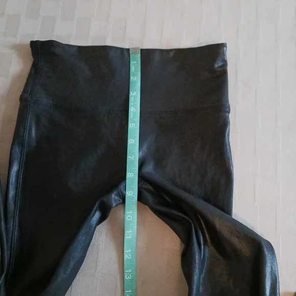 measurements and fabric comps in pictures faux leather that flatters, smoothing fabric that shapes and lifts and contoured power waistband for core compression,high waisted in excellent pre-owned, like new condition