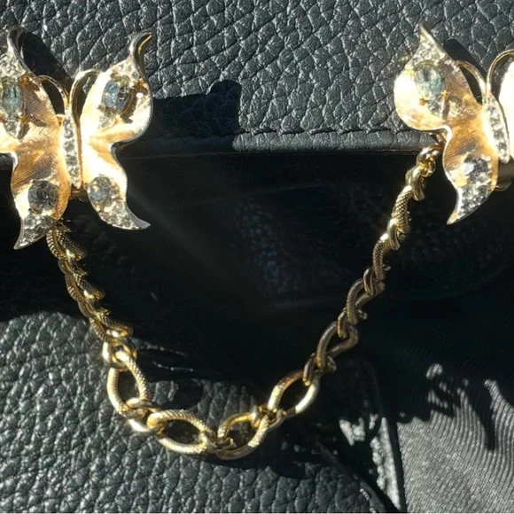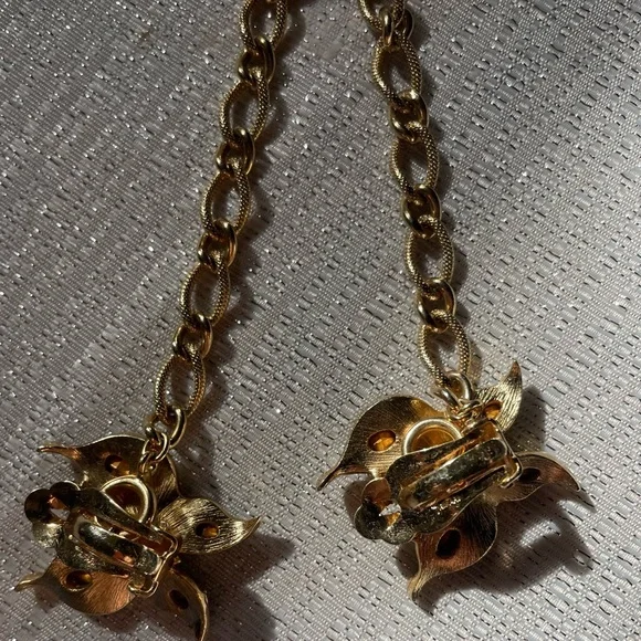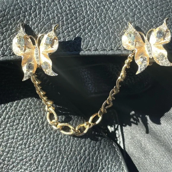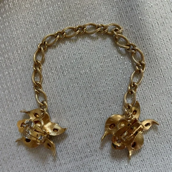 Crown Trifari sweater clips rare vintage Gorgeous gray stones in beautiful condition no missing stones Chain can be removed and can used as two brooches