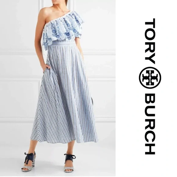 Tory Burch Maritime Strip Wedge SandalsNew in BoxDust Bag includedGorgeous brand new Tory Burch wedges with a lovely navy blue and white combo. These will rock your Spring and...