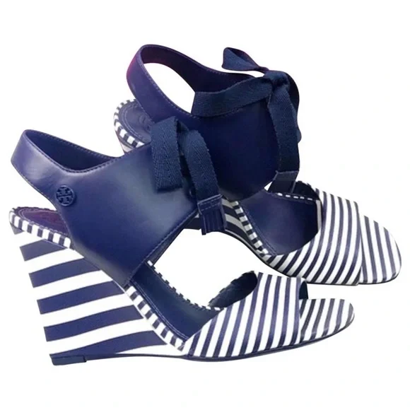 Tory Burch Maritime Strip Wedge SandalsNew in BoxDust Bag includedGorgeous brand new Tory Burch wedges with a lovely navy blue and white combo. These will rock your Spring and Summer season. I kept a pair for myself because I rarely find Tory Burch to be super comfy, but these really are comfortable. That plus style and we have a winner!