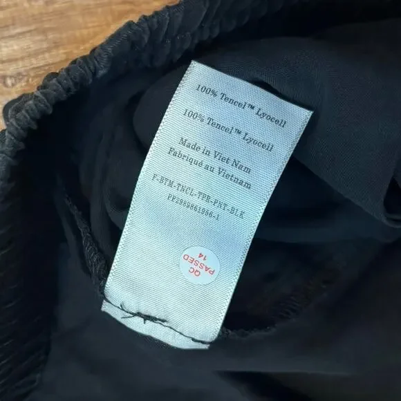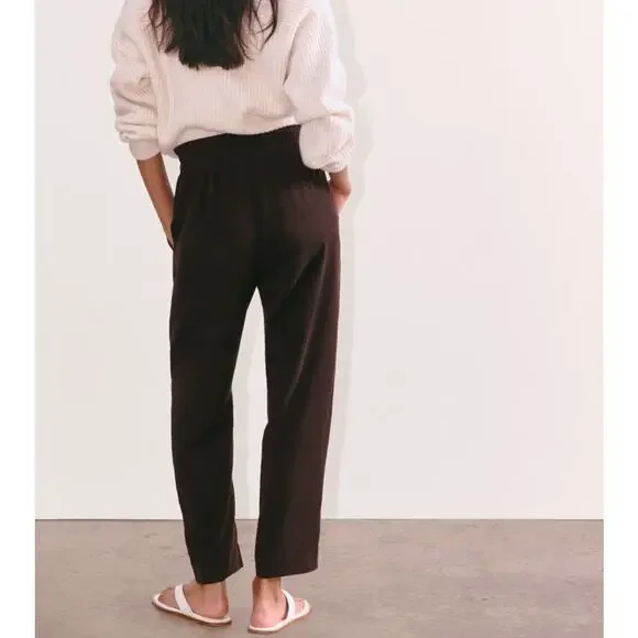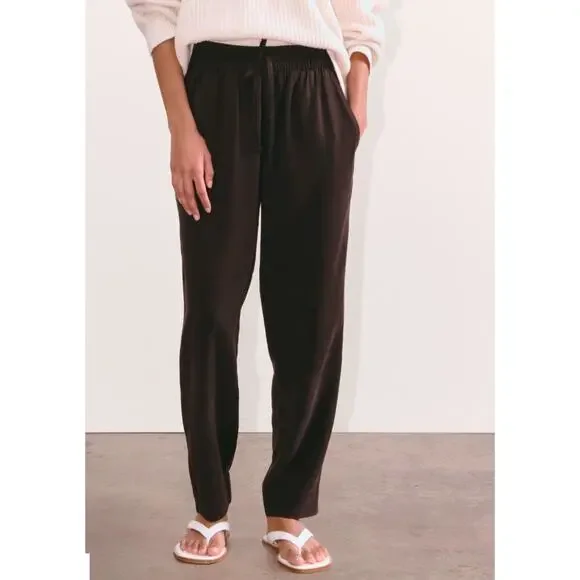 14 inch waist laying flat.12 inch rise.26.5 inch inseam.This piece features an elastic high waist with a drawcord, a tapered leg that hits at the ankle, front angled pockets, and is made from 100% Lyocell. High-rise with a tapered leg. 100% TENCEL™ Lyocell. Sold out online. Retails for $88. New without tags.Ship Same/Next Day, Professional Seller. Offers Welcome. Bundle & Save!90s. Preppy. Casual. Trend. Fall Fashion. Minimalist. Old Money. Quiet Luxury. Sophisticated. Sleek. Pinterest. Office. Euro Summer. Feminine. Classic. Holidays. Office. Work Wear.
