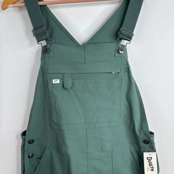 New with tags; no flaws, no stains, no holes. Approximate measurements in photos.Womens size largeOverall length 58"Waist 19.5"Inseam 28"96% nylon 4% spandexNWT Duluth Heirloom Gardening Bib Overalls L Fir Green Utility Cargo FishermanOutdoorSummerSpringFallClassicHikingGorpcoreCoastalCabinCampingHuntingCargo PocketsZip Chest PocketsAdjustable strapsElastic strapsVest backRoll tab cuffsDouble KneeKnee pad pocketRipstop fabric canvasUPF 3011 pockets!RomperJumpsuitCottageCottagecoreThanks for your interest and support of my shop! I´d love to answer any questions you may have. Take care and be well-- Alison