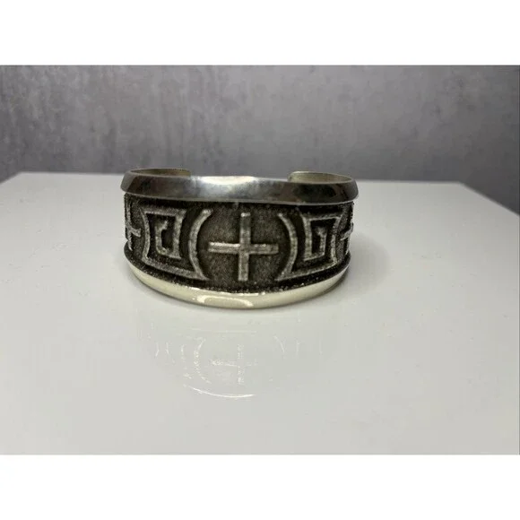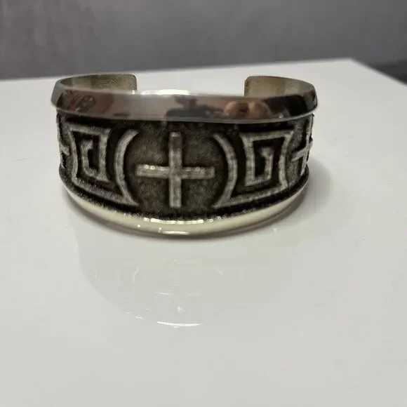 The Wide Chimney Butte Navajo Sterling Silver Cuff Bracelet is a stunning piece of Native American jewelry, weighing 70.4 grams and measuring 6 1/2 inches in circumference. This handmade bracelet is signed by the renowned artisan Chimney Butte and features a cuff style design, perfect for those who appreciate traditional Navajo jewelry. Made from high-quality 925 sterling silver, this bracelet showcases intricate craftsmanship and a tribal affiliation with the Navajo people, making it a beautiful and meaningful accessory for any jewelry lover. Retail stores $560