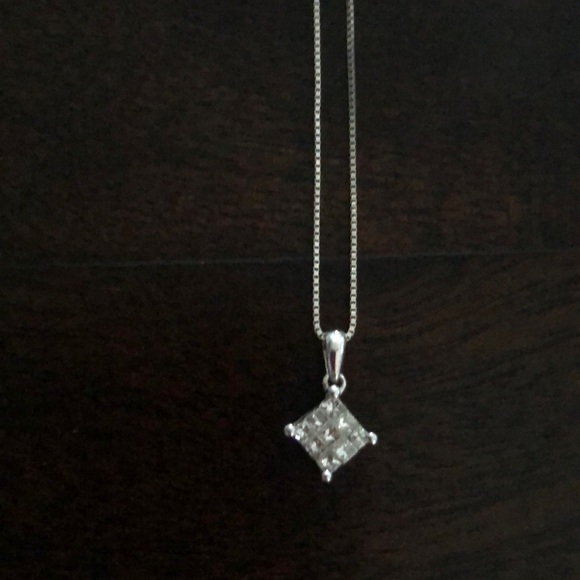Given as a gift and no longer wanted14k white gold9 small diamonds form a diamond (square)shape No signs of wear. Only worn about 10 times and never in shower/pool,etcOriginal...