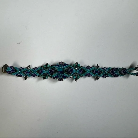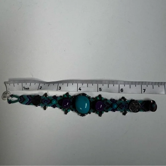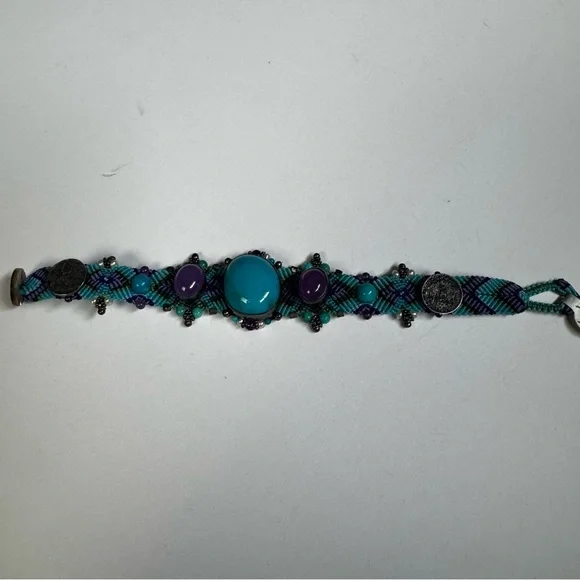 Beautiful handcrafted bracelet featuring blue and purple beads. Intricate design with a unique Woven peyote bird blue purple silver bracelet with stones. Brand new. Excellent...