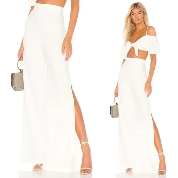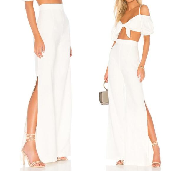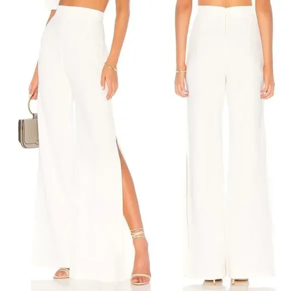 Nookie Belle High Waist Side Slit High Rise Trouser PantsShow off those heels with these Side Slit trousers!Color: White/Off WhiteSize: MediumFeatures: Hidden Back Zip Closure, Slits in pants on both outer sides, High waist, Wide Leg* 90% Polyester, 10% Spandex Excellent Condition, no flaws! Trendy, Fall, Autumn, Night Out, Birthday Celebration, Bridal Party, Rehearsal Dinner, Beach Wedding, White Party, Date Night, Girls Night