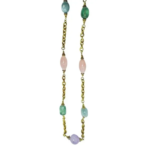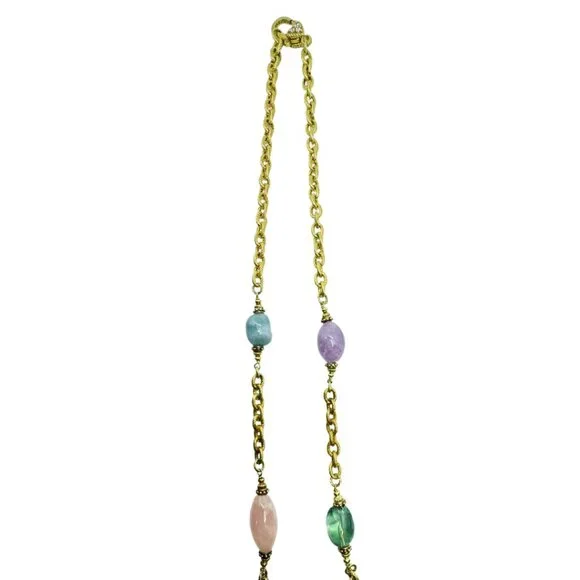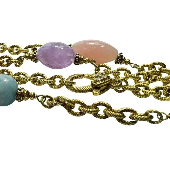 -35.75"-67.5g-14K Yellow Gold over Sterling Silver-Gemstones: aquamarine, amethyst, rose quartz, and fluorite-Signed Judith Ripka Italy 925 CZDue to the light and screen setting...