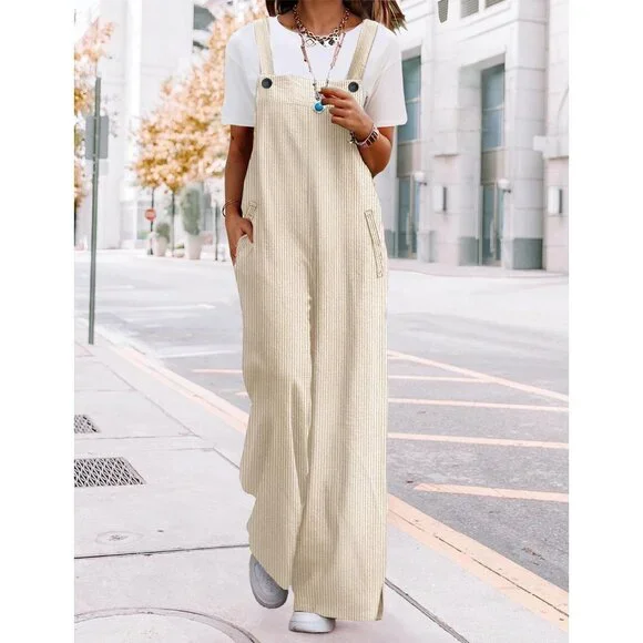 ✅ Bib Jumpsuits for women are made of soft, textured corduroy with vertical stripes that are both stylish and figure flattering. Featuring wrinkle free, durable, and slightly stretchy, they are great choice for lounging all day in during the autumn and winter months.✅ Featuring multiple buttons on the adjustable straps to vary the fit of the bib. The way the torso is cut gives you a waistline while offering relaxed comfort, whether you are curvy or petite. Walking down the street with hand putting in the pockets, side slit wide leg jumpsuits drape well over your shoes.✅ Garment Care: Hand wash or machine wash cold. Hang or lay flat to dry. Low ironing if necessary. Do not bleach.