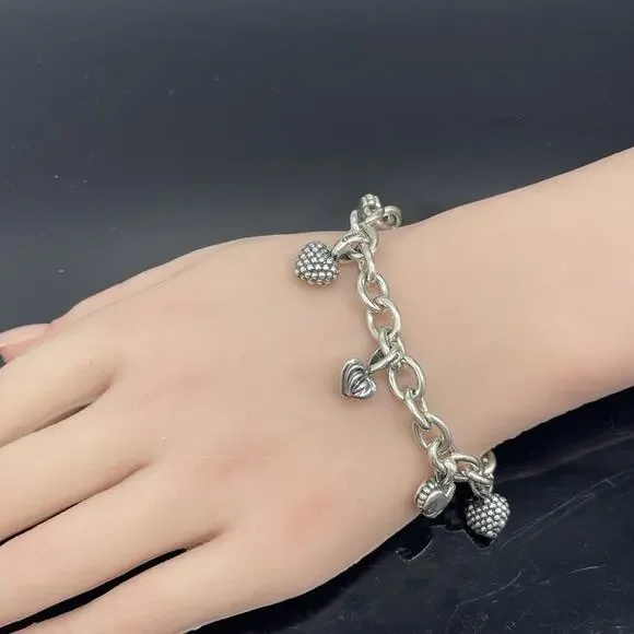 LAGOS Caviar Sterling Silver 6 Heart Charms Chain Link Toggle Bracelet 6.5"