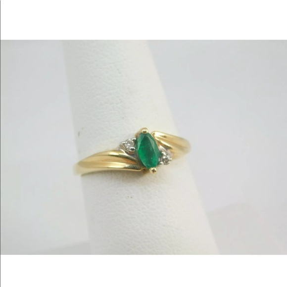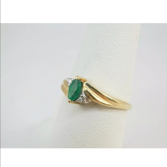 14K SOLID GOLD EMERALD DIAMOND SIZE 6.5