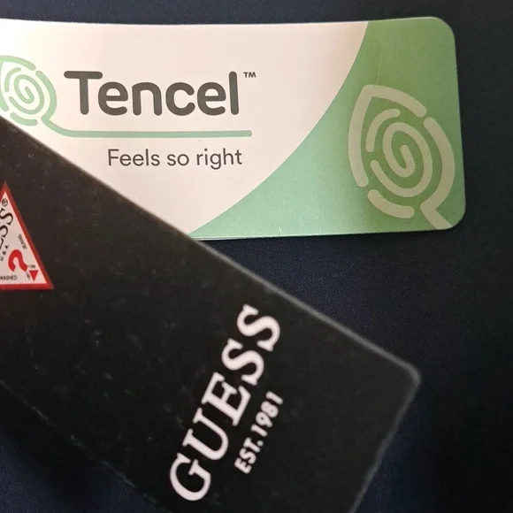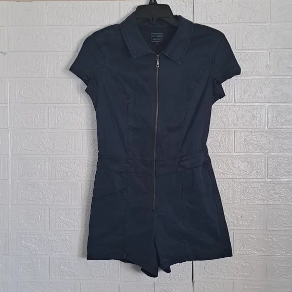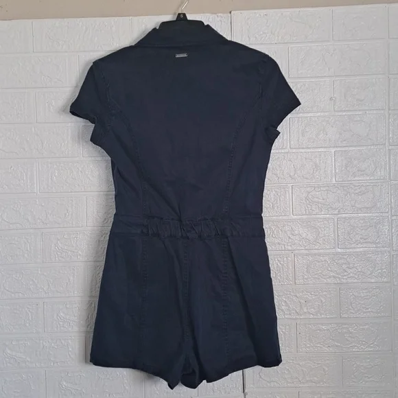 Guess Gemma Romper in Secret Blue Multi New With Tags MSRP $128GUESS goes utility-chic with a zip-front short-sleeve romper.Approx. inseam: 2-3/4"High rise; approx. leg opening: 11"Spread collar; front zipper closure53% TENCEL Lyocell, 35% Cotton, 9% Elastomultiester/Elasterell-P, 3% SpandexMachine washablePerfect for any occasion, this effortless romper features a zip-front closure and folded collar. Contains eco-responsible raw materials.Size SmallApproximate flat lay manual measurements Bust 16.5"Waist 14"Hips 16.5"Inseam 2.5"Length 29"