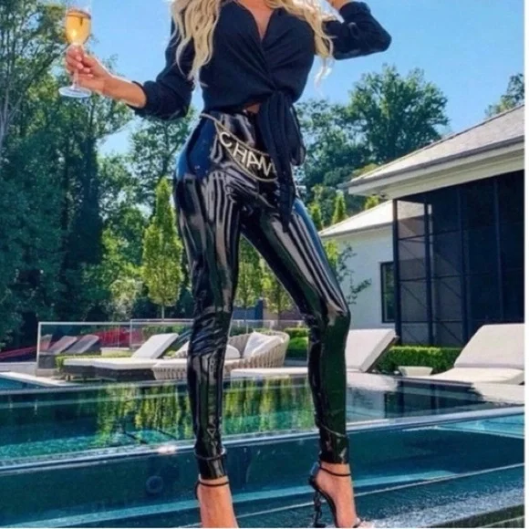 Great pre-owned condition- see photosSize smallApproximate measurements (flat):Waist: 11.75”Rise: 10.25”Inseam: 26”Self: 62% poly, 36% viscose, 2% elastaneWaistband: 72% nylon, 28% elastaneMade in ChinaHand wash coldFaux patent leather fabricRaw cut hem4-way stretch fabricRevolve Style No. CMAN-WP2Manufacturer Style No. SLG25