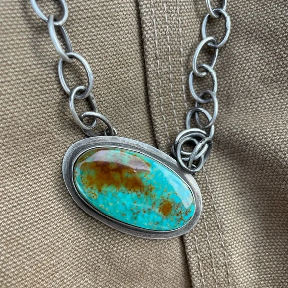 BRAND NEW with tags. Real turquoise on fine silver chain. Chain is about 11” from clasp to stone