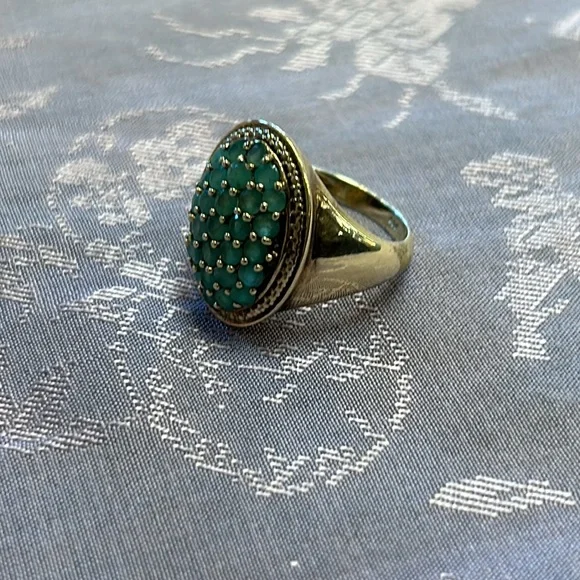 Jade 925 Sterling Silver Gold Overlay Size 6 Ring