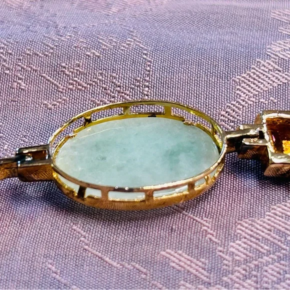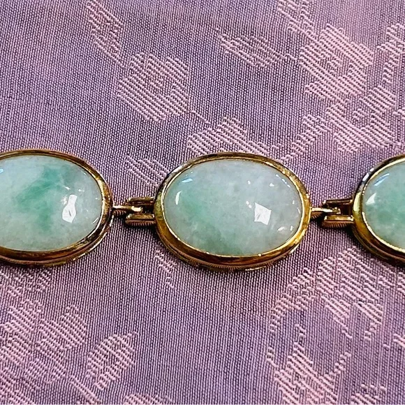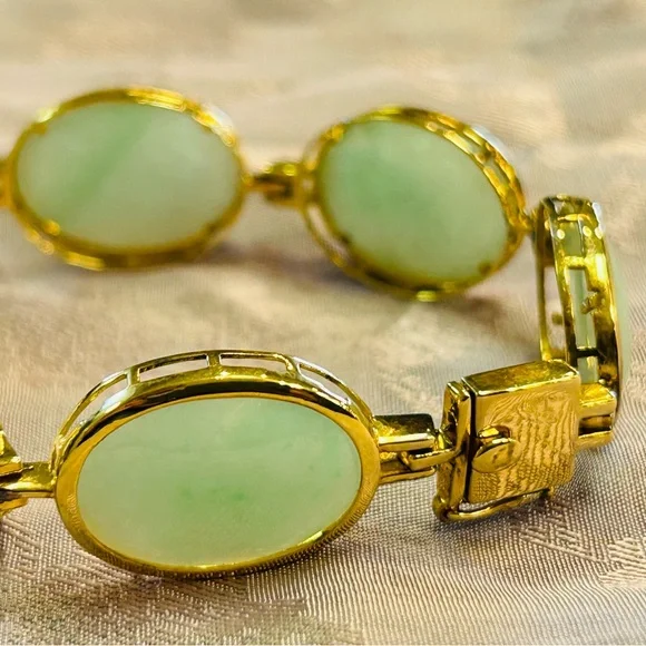 Beautiful Jade 925 Sterling Silver Gold Overlay Bracelet