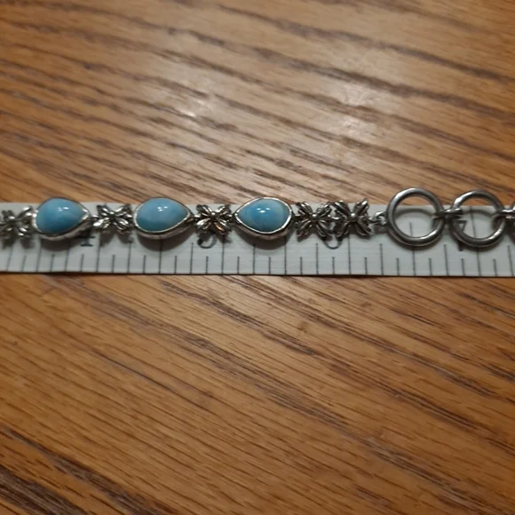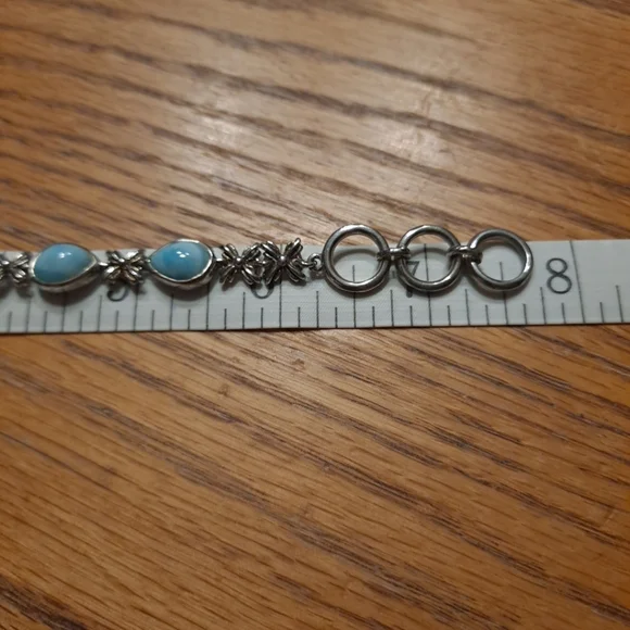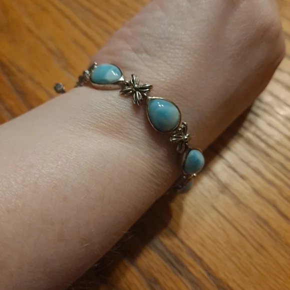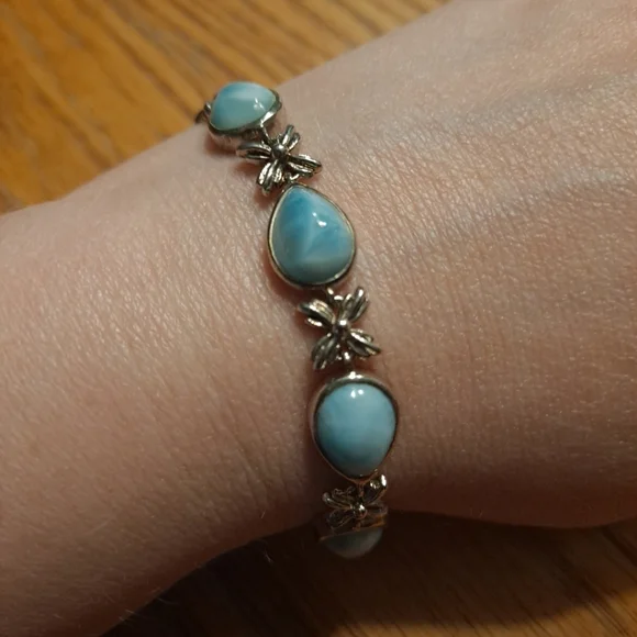 Here comes a beautiful sterling silver bracelet from MARAHLAGO that will surely add a touch of grace to your persona. The bracelet is crafted with the finest 925 silver and features an exquisite floral design. The toggle closure ensures it sits perfectly on your wrist, adding to its overall elegance. The lovely Larimar stones are top grade and catch the eye, adding an other-worldly allure. Wear it out to a fancy dinner, or just pair it with your favorite jeans and t-shirt combo for an effortless chic look.