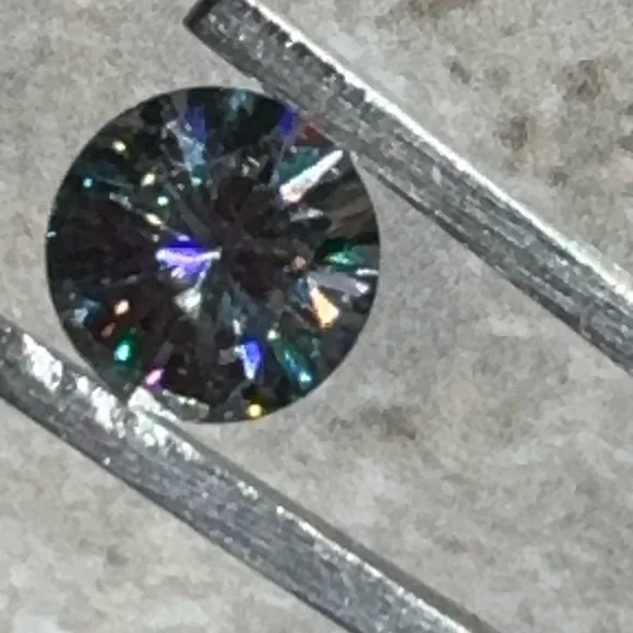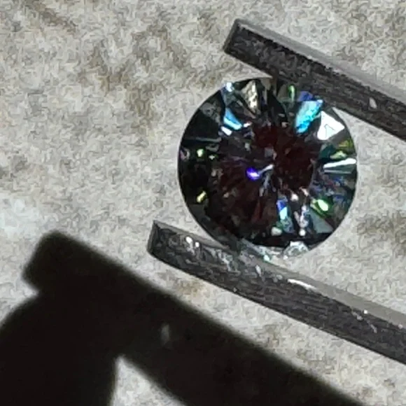 Absolutely gorgeous, 8.45mm / 2.4 Carat Gray Moissanite that varies from medium gray to dark gray depending upon the lighting.