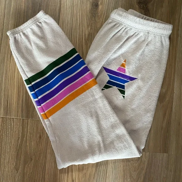 Brand NewRetails for $154• MADE in LOS ANGELES• 100% Premium Cotton• Machine Wash Cold, Lay Flat to Dry• Ultra Soft French Terry Fabric• Screen Print Graphics Throughout• Elasticized Leg Opening• Elasticized Waistband• Oversized/ Boyfriend Fit