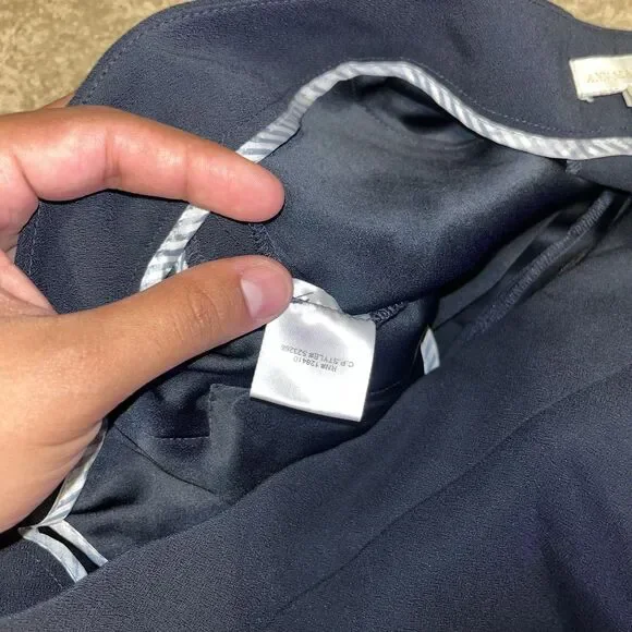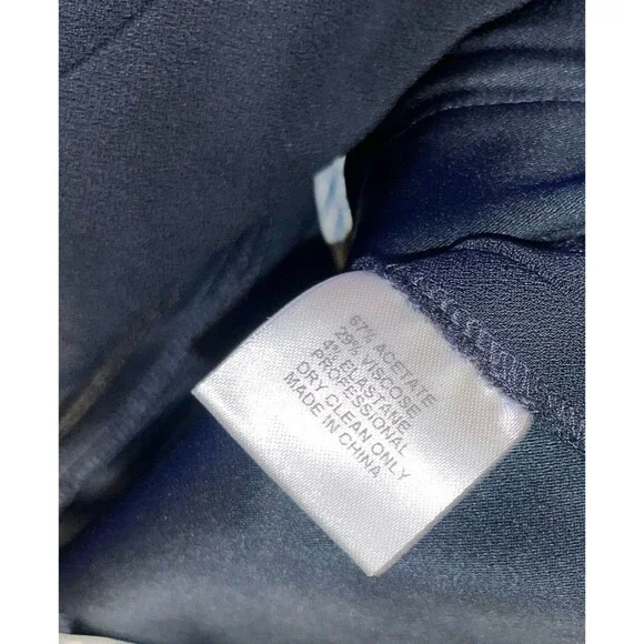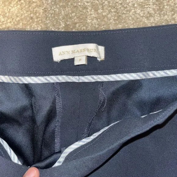 Elevate your wardrobe with the Ann Mashburn dress pants, tailored for a regular fit in size 8. These navy pants are versatile enough to transition from a day at the office to an evening event. Featuring a wide-leg silhouette, they offer a modern twist on classic preppy style. The flat front design, complemented by a subtle button and zipper accent, creates a sleek, sophisticated look. Crafted for women who appreciate both comfort and elegance, these pants come equipped with practical pockets and are machine washable for easy care. Whether you´re dressing up for a formal occasion, heading to work, or keeping it casual for a day out, these Ann Mashburn pants are an ideal choice for multiple seasonsfall, spring, and summer.