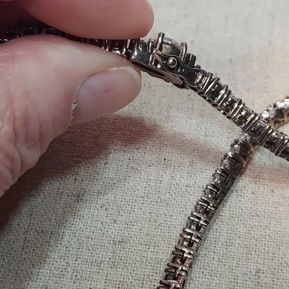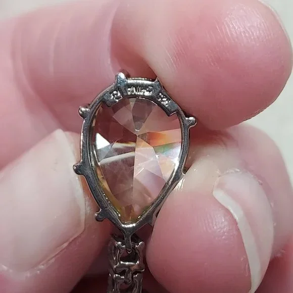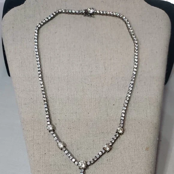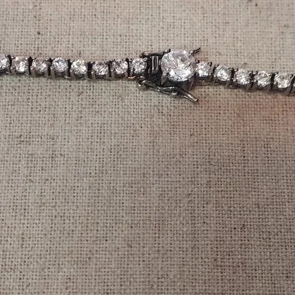 Beautiful CZ Tennis necklace 17" long clean and from smoke free home. 6 Lemon Quartzfancy round cut accents make this necklace beautiful from the front and back. Perfect for Weddings, Anniversary´s Birthdays or any special occasion you want to make a classic elegant statement. Pear Shape Cushion cut Lemon Quartz drop is 2.5 karats and the drop is a 1" drop. double clasp closure for security and it is signed on the Pear ddrop .928 China and a makers Mark I unfortunately can not readThis will ship in a box carefully wrapped and shipped same or next day.