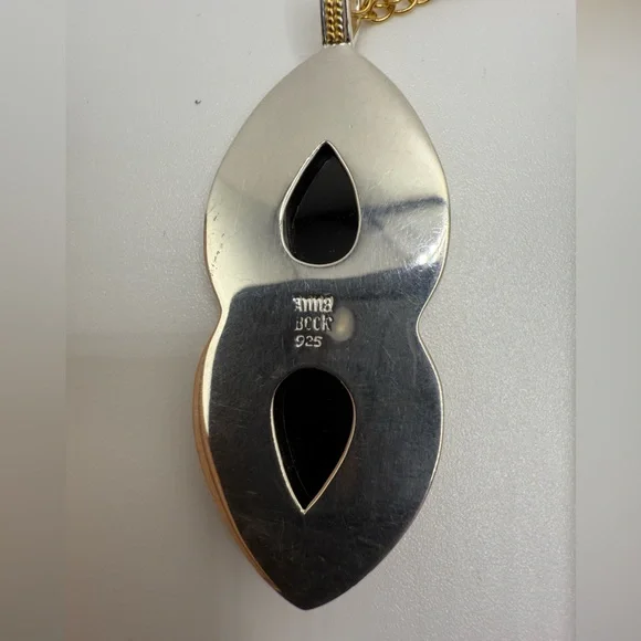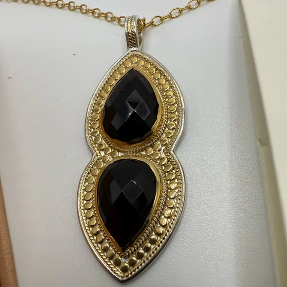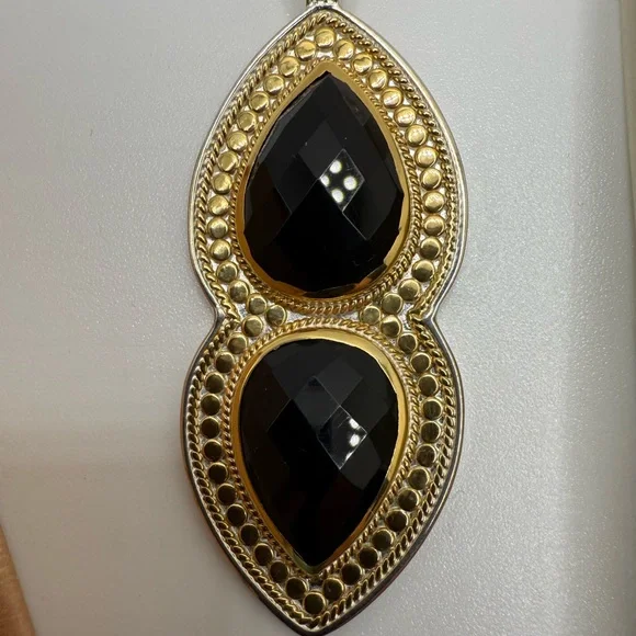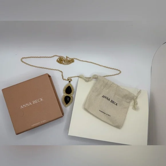 NWT Anna Beck Gold Plated Black Onyx Pendant Necklace