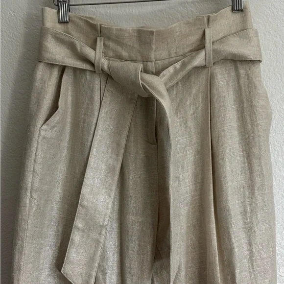 VERONICA BEARD Metallic Tie Waist Linen Blend Pants Size: 2New without tag in excellent condition. Never wornMaterial: 55%Linen45%ViscoseColor: CreamSide pocketsTie waist Hook & eye with zip closureHand Measurement: Inseam: 26´´Leg Opening: 6.5´´Waist: 13.5High rise: 12’’Come from smoking free home & pet free homeFast Shipper/Same Day/Next DayLet me know if you have any questionsThanks For Looking!