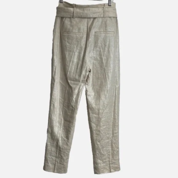 VERONICA BEARD Metallic Tie Waist Linen Blend Pants Size: 2