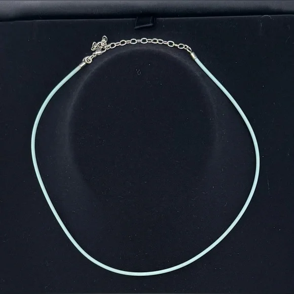 SS Retired Blue rubber cord necklace 16.5” VGUCHad T replace the original round tag. Approx 13.25” with approx 3.25” extension and includes a pouch. Looks cute with a charm...