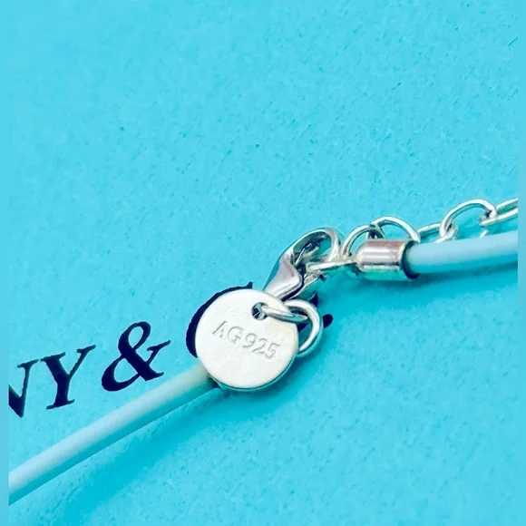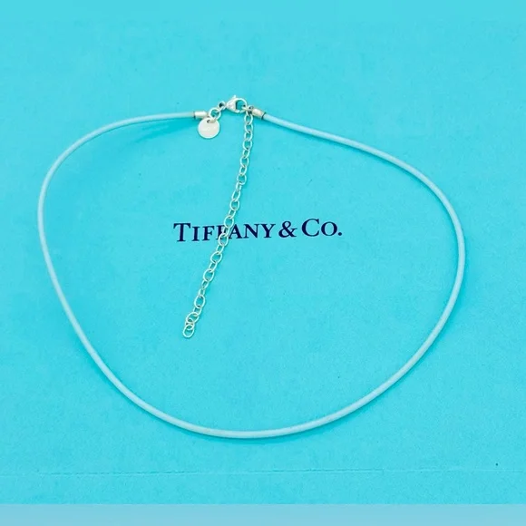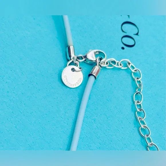 Tiffany & Co SS Retired Blue Rubber Necklace Sterling Silverw/pouch