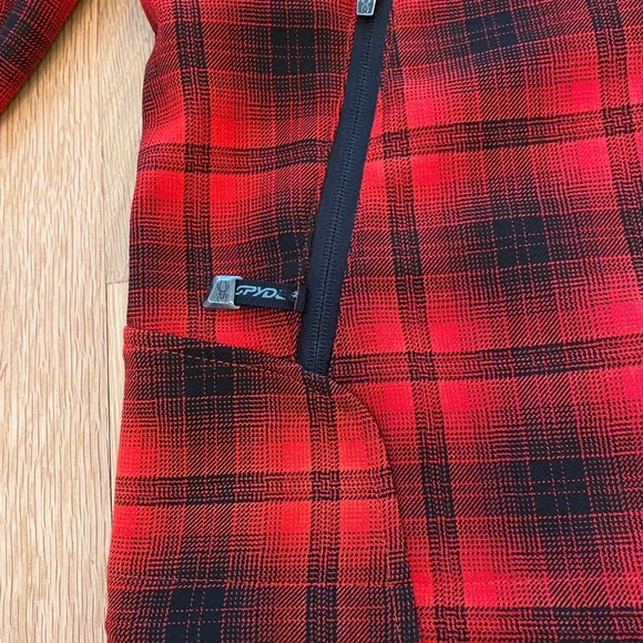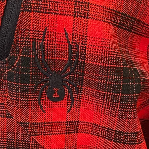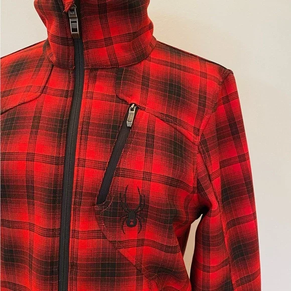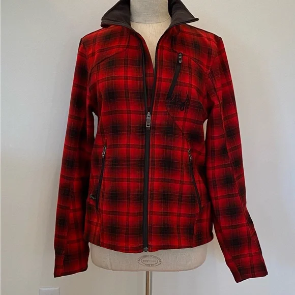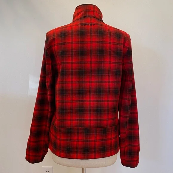 Spyder Red Black Plaid Jacket Quilted Lining Zippered Pockets Mens Size S/ Unisex Great Condition