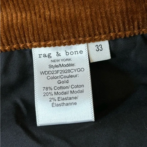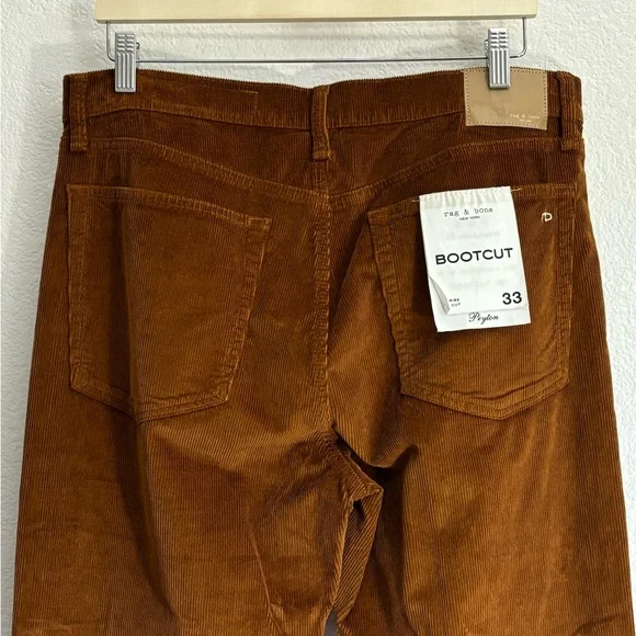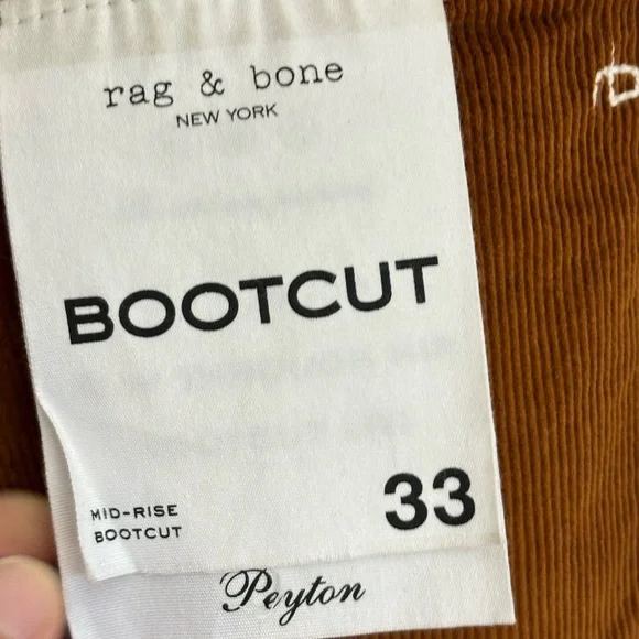 rag & bone Woman Mid Rise Corduroy Bootcut Pants Size: 33New with tag (Only back waist tag) in excellent condition. Never worn (NO FLAWS)Material: 78%Cotton20%Modal2%ElastaneColor: Orange*** The color may little different (Lighter) due to the lighting***5 Pockets designButton with zip closureHand Measurement: Inseam:31´´Leg Opening:9.5Waist: 17’´Fast Shipper/Same Day/Next DayLet me know if you have any questionsThanks For Looking