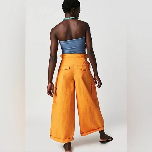 Free People Hallie Nylon Pants Orange Size XSBrand new without tags. Excellent new condition. Size XS. But the waist can be cinched to XS or expanded to at least a small/medium. See last measurement pic. So cool with a utility-inspired edge, these parachute pants are the perfect need-now pair.Fit: High-rise, wide leg silhouetteFeatures: Paper bag-inspired waistband, bungee cord detailing at waist, zip fly and button closure, oversized pockets, cuffed hemlinesWhy We ❤ It: A true elevated addition to your bottoms collection, pair these with sleek heels or sporty sneakers for endless ways to wear.65% Nylon, 35% CottonAre you a University of Tennessee Fan?These are Tennessee Orange. Go Vols. VFL. GBO. These would be great to wear to the college football, basketball and baseball games.Always remember if you purchase more than one item from the same seller, you only pay one shipping cost. So don’t forget to check out the rest of my closet. Bundle your items and save. If you have questions on how to do this please comment and send me a message.