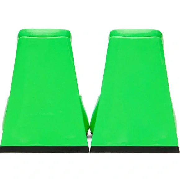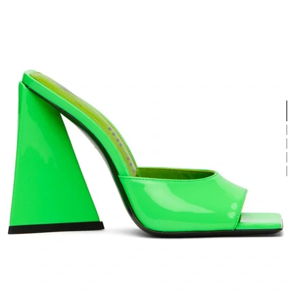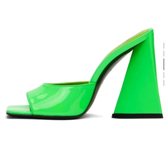 Elevate your style with The Attico´s striking green heels, featuring a bold neon hue and a chunky block heel for added height. These open-toed mules boast a minimalist design with a wide front strap, perfect for making a statement.