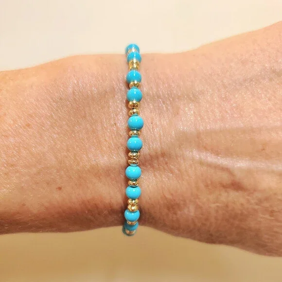 14k Solid Yellow Gold 4mm Blue Sleeping Beauty Turquoise Saucer Bead Bracelet