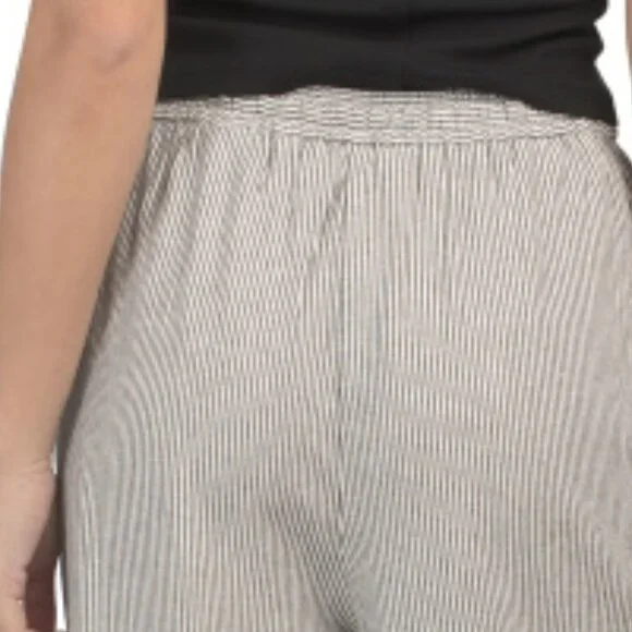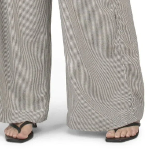 New! Max Studio Linen Wide Leg Waist Tie Striped Pants with pockets 255 2M7