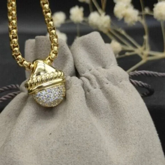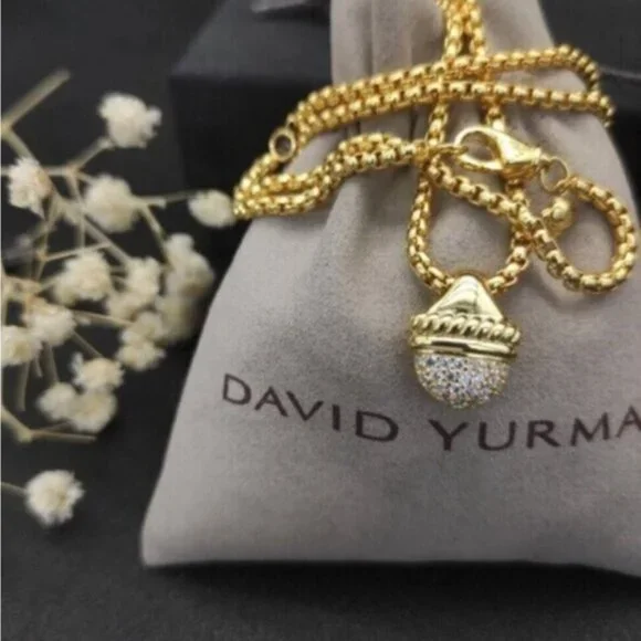 David Yurman 18k Gold Half Pave Diamond Pendant Necklace with 55cm Chain (3mm)